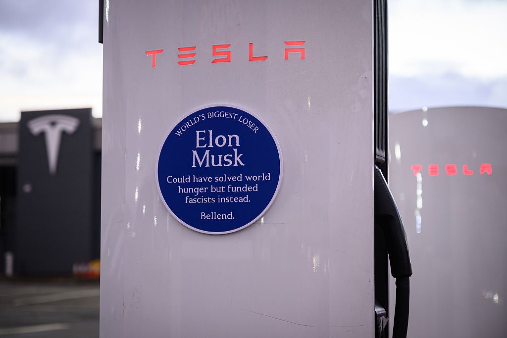Tesla showrooms faced vandalism, while Musk himself faced protests aplenty – collections of people, bus stop posters, even a car smashed to pieces.