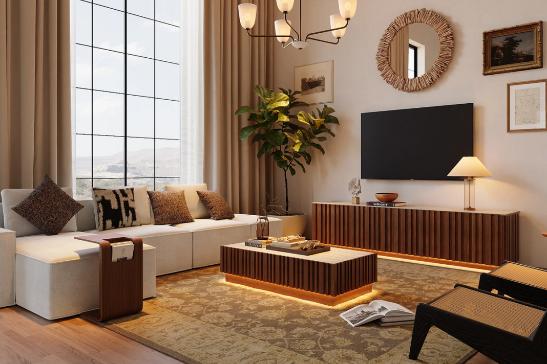 Homary’s lighting collection takes a more layered approach. Sculptural chandeliers act as visual anchors over dining tables and living areas, while floor lamps and accent lighting bring warmth to quieter corners.