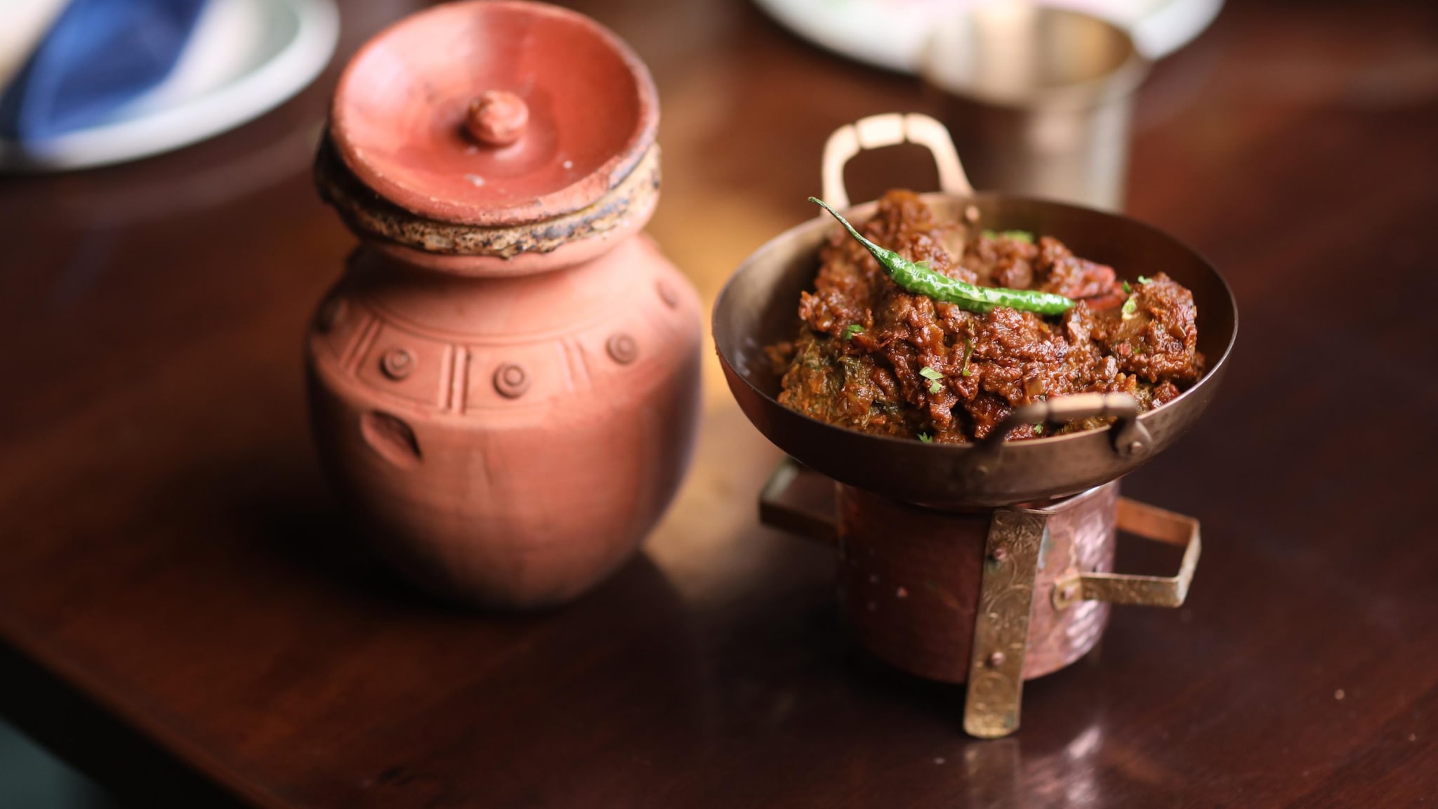 The experience begins with a selection of robust snacks such as Jodhpuri Mirchi Vada with Saunth Chutney, Aloo Kali Mirch Tikki, Methi Muthiya, Gosht Sheekhampuri, and Chicken Varuval.