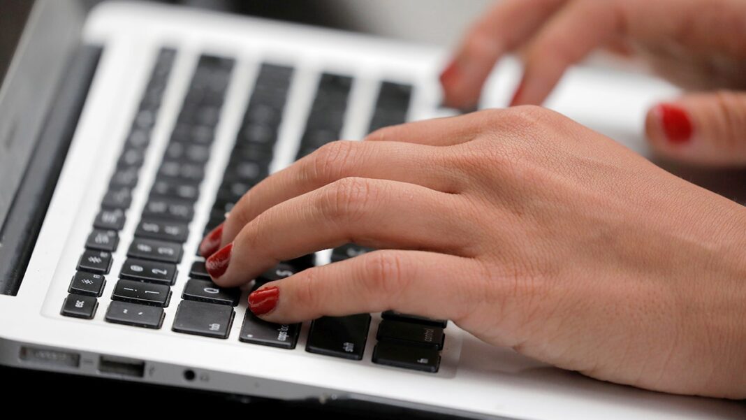 A woman browses social media on her laptop. Scammers use fake accounts and misleading profiles to lure victims. (Kurt “CyberGuy” Knutsson)